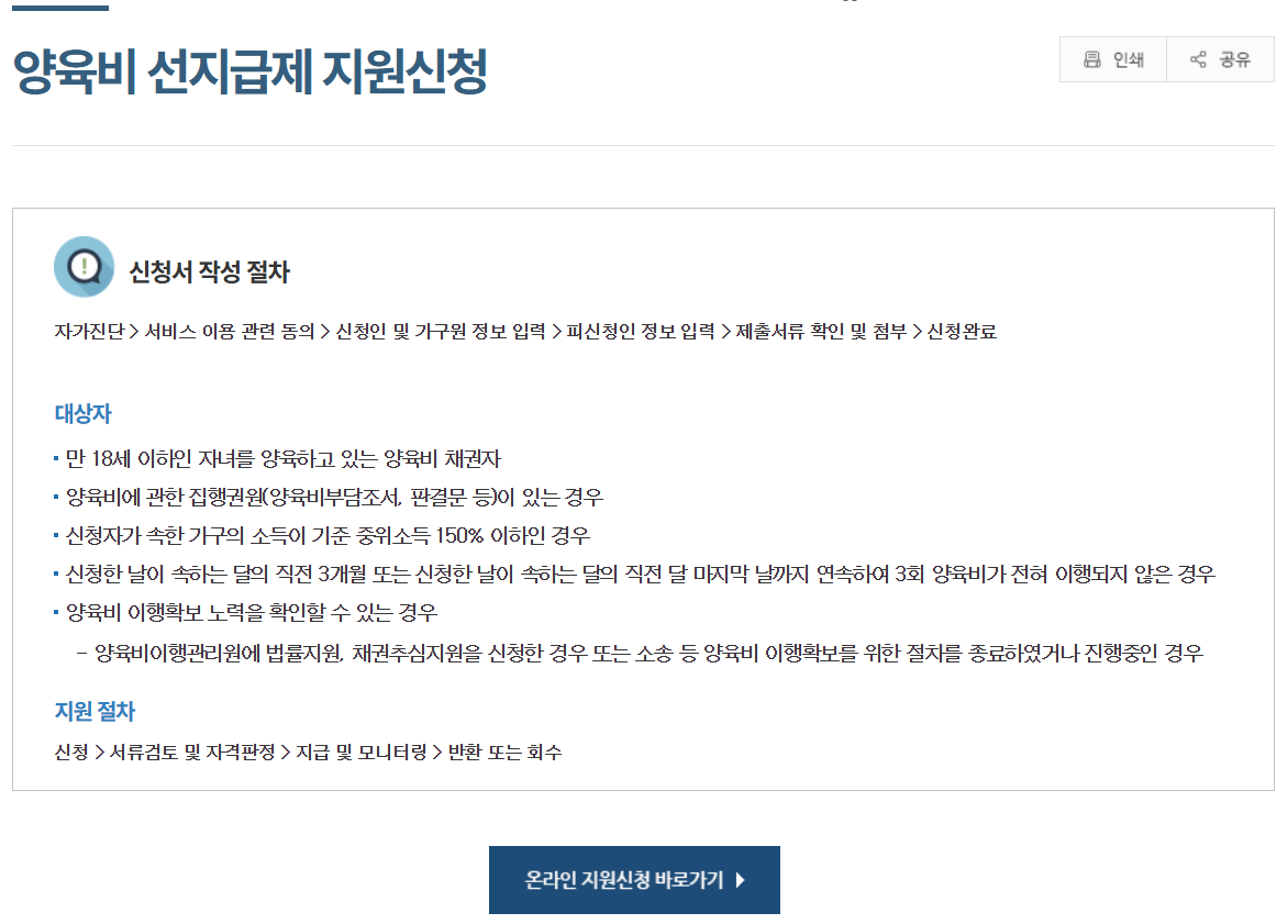 양육비 선지급제 신청 방법